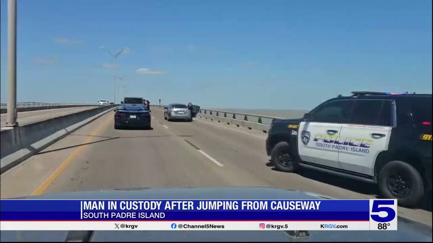 According to the news release, the man jumped from the causeway Monday shortly after 11:30 a.m. after officers with the South Padre Island Police Department attempted to perform a traffic stop on his vehicle.