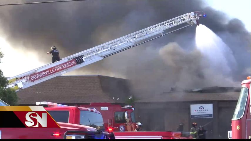 El lunes por la noche al menos cuatro negocios ubicados en una plaza comercial de Brownsville terminaron reducidos a cenizas y escombros después de un fuerte incendio.