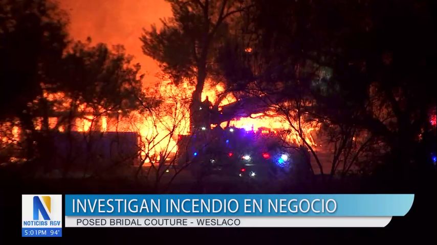 Bomberos de Mercedes, Donna, Elsa, acudieron al llamado de los apagafuegos de Weslaco cuando se reportó el incendio en la cuadra 2900 de la calle Internacional del negocio Posed Bridal Couture.