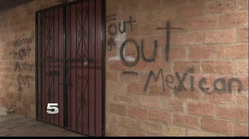 Police say the All Souls Unitarian Universalist Church on the 100 block of Paredes Line Road was vandalized on Sunday. Someone spray painted the words “out Mexican out” and “stay out” on multiple walls of the church.