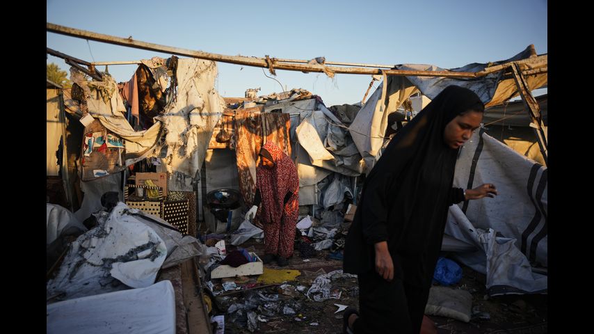 In Gaza, Palestinians were reeling after the strikes. At dawn, Palestinians at a displaced camp cleared remains of a destroyed tent next to a crater. They found the body of a small child and wrapped it in a blanket.