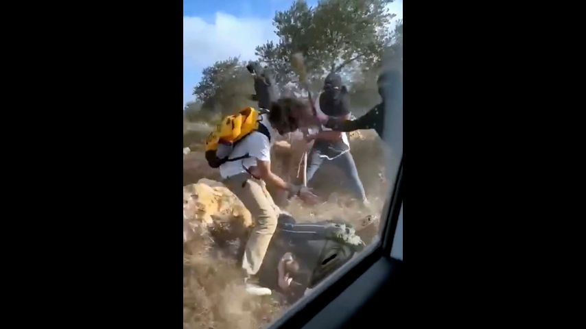 In one of the videos obtained by the AP, a masked man was seen running through an olive grove and beating at least two people with a club, including a woman as she lay motionless on the ground. The masked man appeared to be wearing tzitzit, a ritual fringed garment for Jews.