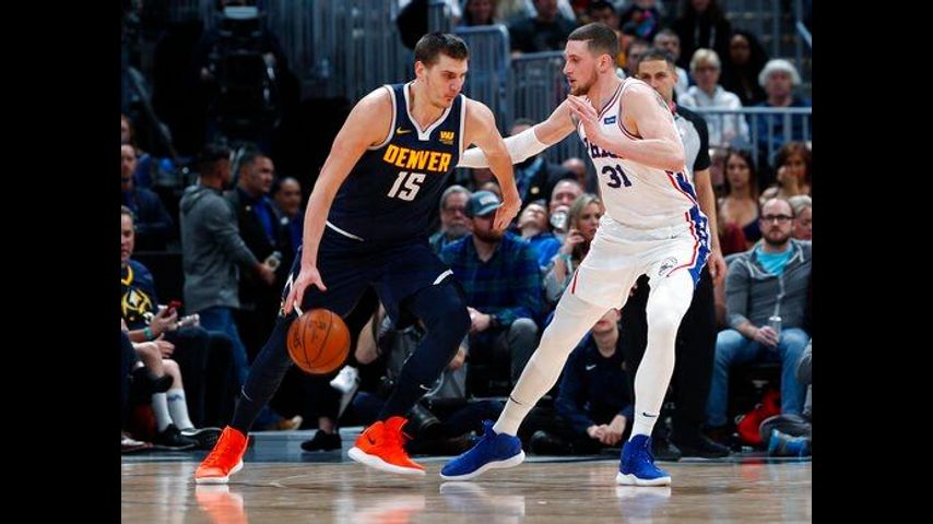 76ers: With just three offensive rebounds in the first half, the 76ers managed a single second-chance point, three fewer than the Nuggets, who had just five offensive boards, three from Jokic. ... Mike Muscala hit at trio of 3-pointers early in the first half.