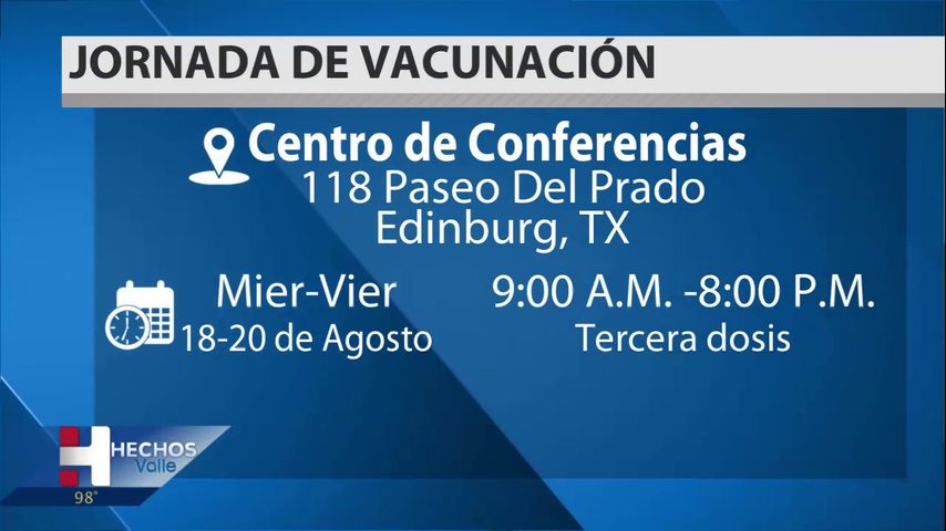 Usted ya puede aplicarse su tercera dosis de la vacuna Pfizer, la cual está disponible y será en el centro de conferencias de Edinburg en el Renaissance hasta las 8 de la noche este jueves y mañana viernes de 9:00 a 8:00 p.m.