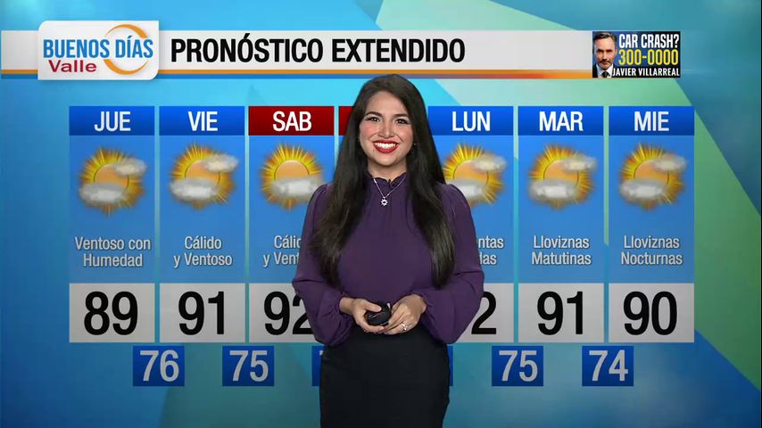 Jueves 25 de Abril: Parcialmente nublado con temperaturas en los altos 80s