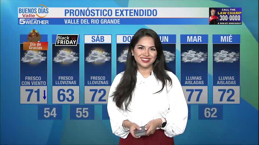 Jueves 28 de Noviembre: Fresco con viento con temperaturas en los bajos 70s