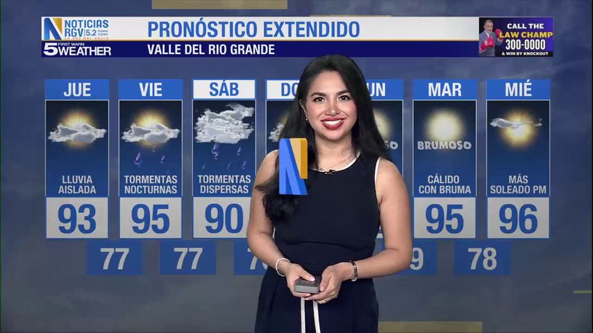 Jueves 29 de Mayo: LLuvia aislada, temperaturas en los 93s