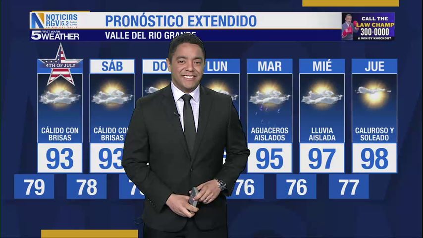 Jueves 3 de Julio: Brisa y humedad, temperaturas en los 80s