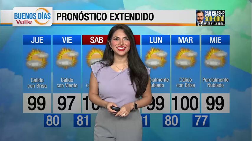 Jueves 30 de Mayo: Cálido con brisa con temperaturas en los altos 90 °F
