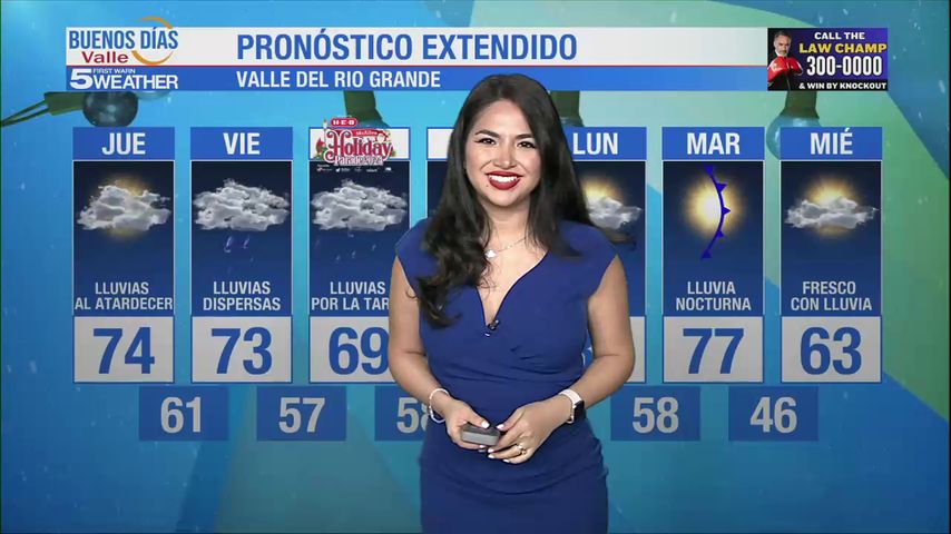 Jueves 5 de Diciembre: Lluvias dispersas, temperaturas en los 74s