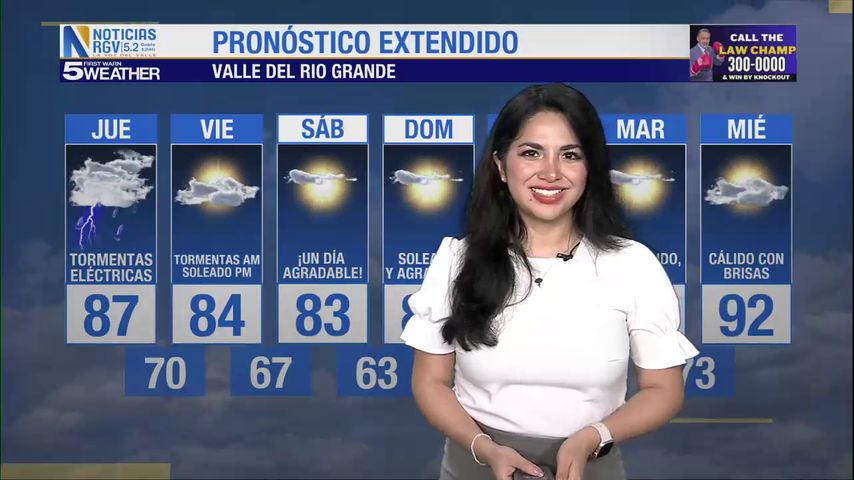 Jueves 8 de Mayo: Lluvias y tormentas eléctricas, temperaturas en los 87s