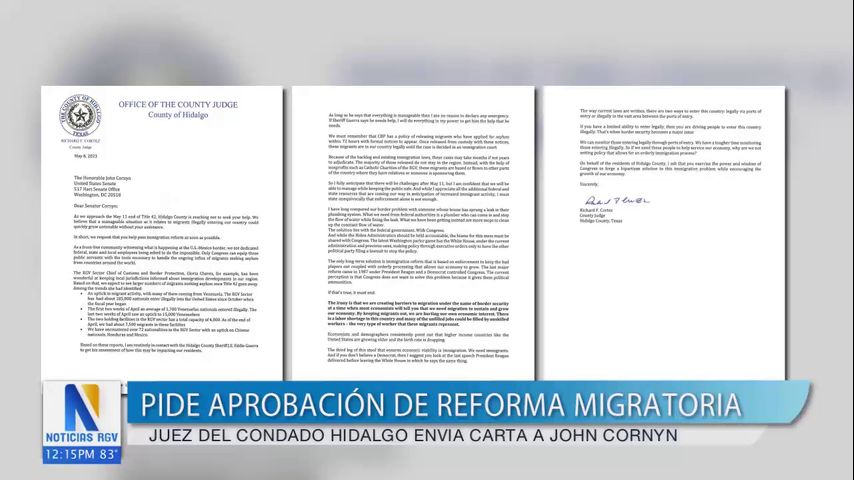 En una carta, el juez le pide a Cornyn que ayude a aprobar la reforma migratoria lo más pronto posible para ayudar a detener el flujo de migrantes que se espera ver en nuestra frontera.