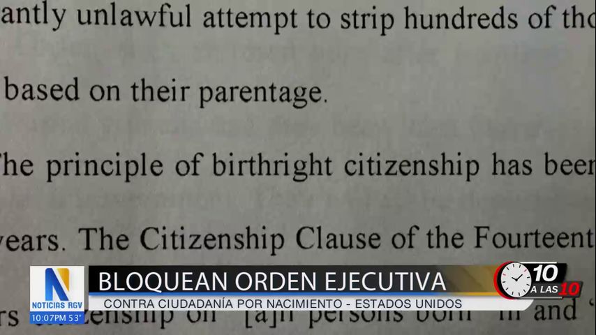 Un juez federal en el estado de Washington bloqueó temporalmente la orden ejecutiva del presidente Donald Trump para eliminar la ciudadanía por nacimiento para hijos de inmigrantes indocumentados. La orden ejecutiva del presidente Trump, firmada el primer día de su administración, buscaba impactar a las familias de migrantes indocumentados negándoles la ciudadanía a sus hijos nacidos en Estados Unidos, un juez federal en Seattle declarándola inconstitucional.