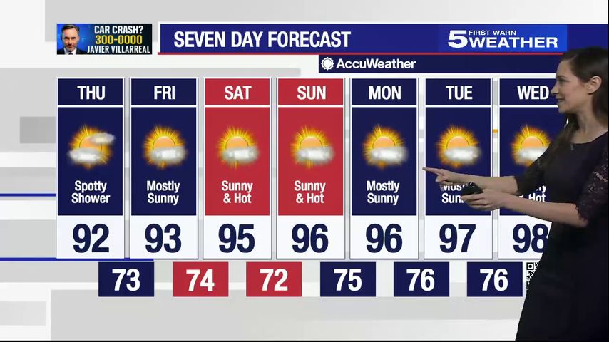 June 2, 2022: Spotty showers with temperatures in the low 90s