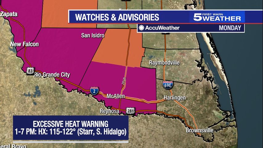 An excessive heat warning is in effect for Starr and southern Hidalgo counties on Monday.