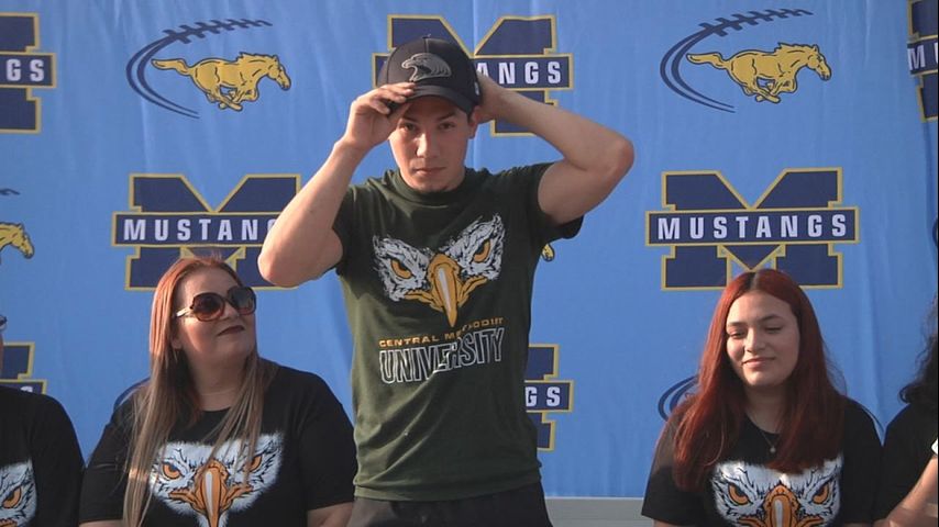 MCALLEN - Justin Chairez signing his NLI to Central Methodist University to play football. He played safety for McAllen memorial.