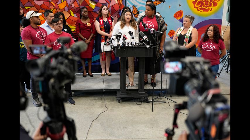 Abrego Garcia's wife, Jennifer Vasquez Sura, said during a news conference before Wednesday's scheduled court hearing that it's been 106 days since he "was abducted by the Trump administration and separated from our family." She noted that he has missed family birthdays, graduations and Father's Day, while "today he misses our wedding anniversary."
