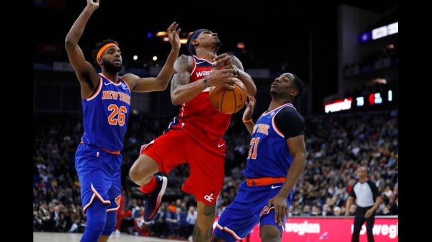 Noah Vonleh gave the Knicks the 100-99 edge with a one-handed finish over Bryant with 33.7 seconds remaining, and a 3-pointer by Beal rimmed out. Kevin Knox tried to run down the clock, but his off-balance 3-point attempt missed the rim and led to a shot-clock violation with 3.3 seconds remaining.