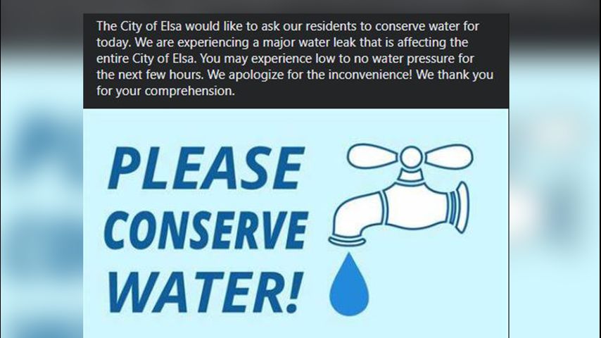 La ciudad de Elsa pidió el viernes a los residentes que ahorren agua debido a una importante fuga que está afectando a toda la ciudad.