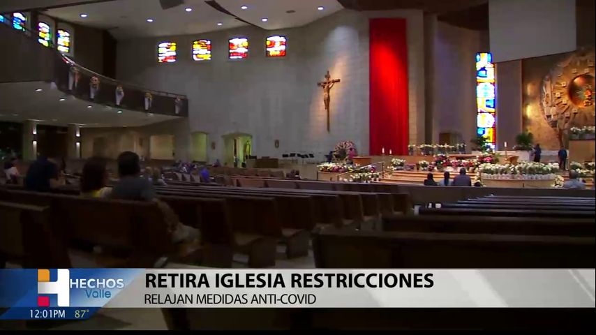 En una carta, el obispo Daniel E. Flores dijo que la mayoría de las restricciones de COVID-19 de la iglesia se levantarían el sábado 29 de mayo, incluido el mandato de la máscara. La misa vespertina también regresará el sábado y todos los bancos estarán disponibles para los feligreses; cada familia debe permanecer a 3 pies de distancia.
