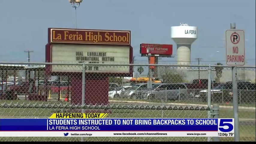 La Feria High School students will not be allowed to bring backpacks to school on Friday as the district and authorities investigate an unsubstantiated threat.