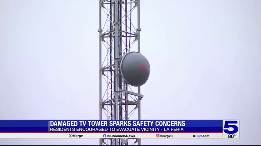 The district says the tower — located south of La Feria — is leaning ever so slightly to the southeast after two of the 24 cables that held it up snapped this week.