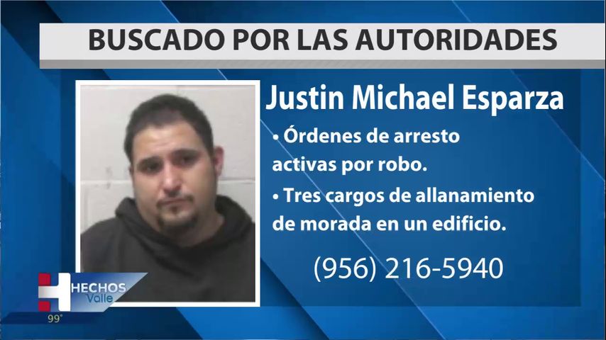 La policía de harlingen busca a un hombre con órdenes de arresto activas por robo y tres cargos de allanamiento de morada en un edificio.