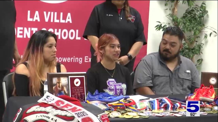 La Villa's Kaycei Salazar signed to run track at Stephen F. Austin on Wednesday morning. Salazar is a two-time state champion and 2A record holder in the 800-meter.
