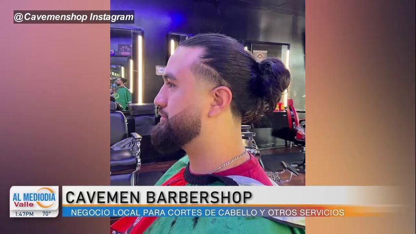 En La Voz del Valle, Samuel Reyes demuestra los cortes de pelo y otros servicios que ofrecen para el cuidado de pelo en Cavemen Barbershop.