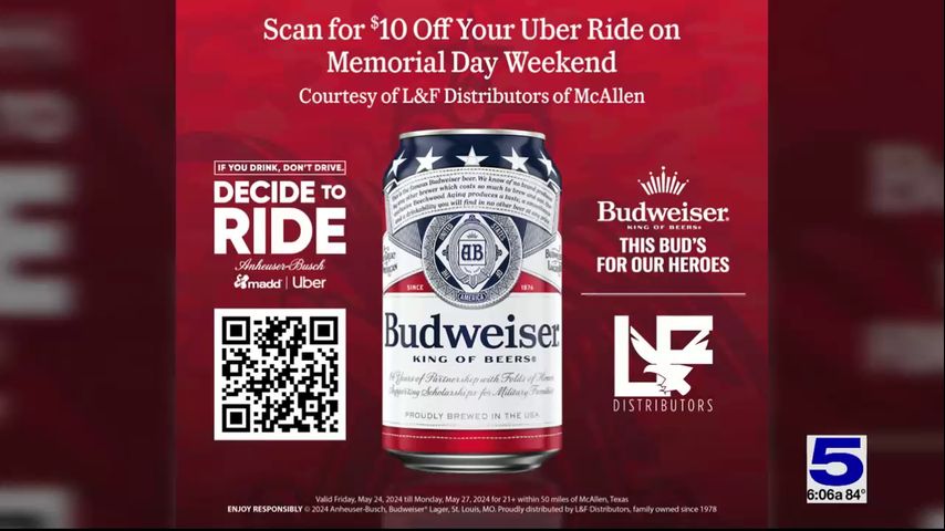 L&F Distributors in McAllen is offering $10 off an Uber ride to get people home safely.