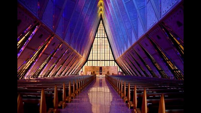 "From the outside, it invites participants to come indoors," said Lt. Col. Lance Giannone, a protestant chaplain at the academy. "It has a design that reflects upward toward the heavens and God."
