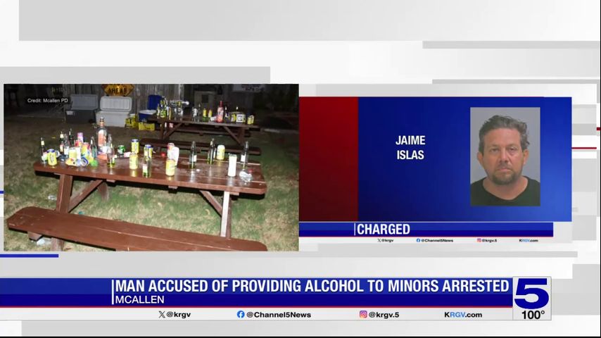 McAllen police spokesman Sgt. John Saenz identified the suspects as 51-year-old Jaime Islas and his juvenile son. A news release said both individuals are suspected of providing "access of alcoholic drinks to minors at a residence, including the victim."