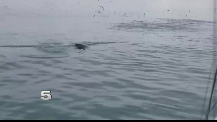 Bonner says they've been spotted out there before; they're drawn to warm water.