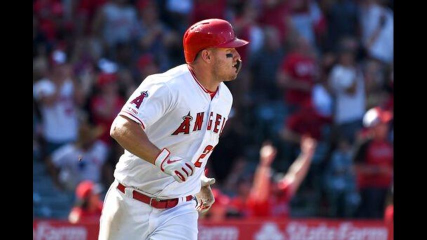 Angels star Mike Trout has homered in four straight games, matching a career best. The two-time AL MVP connected five times in that span, and tries to keep up the streak when Milwaukee visits Anaheim.