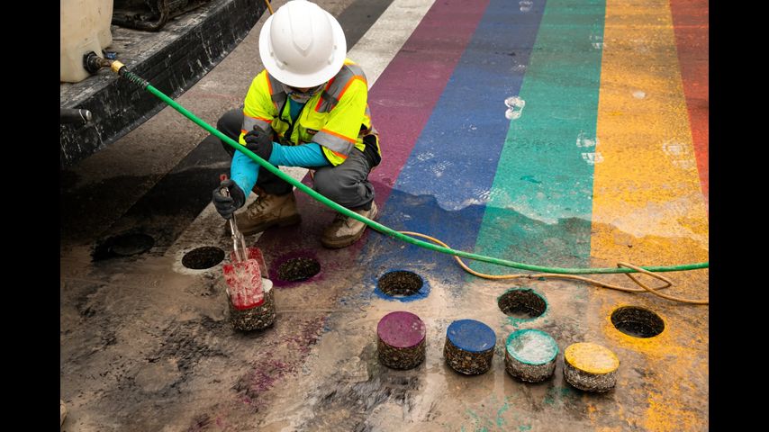 On Tuesday, a road crew started the morning covering up one of San Antonio’s most colorful landmarks, leaving seemingly no trace of the city’s rainbow crosswalks by noon. The only remnants of the crosswalk were cylinders extracted from each color of the rainbow, to be saved by the city for historical purposes.