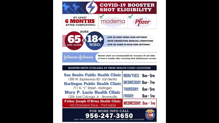Additionally, a vaccine clinic will be held at the Father O’Brien Health Clinic on Wednesday, Jan. 5 from 9 a.m. to 1 p.m. at 142 Champion Drive in Port Isabel.