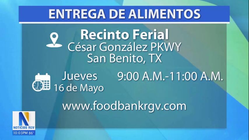 La entrega será este jueves 16 de mayo a partir de las 9 de la mañana terminando a las 11 en la 551 Cesar González Parkway en San Benito, no es necesario residir en la ciudad para asistir.