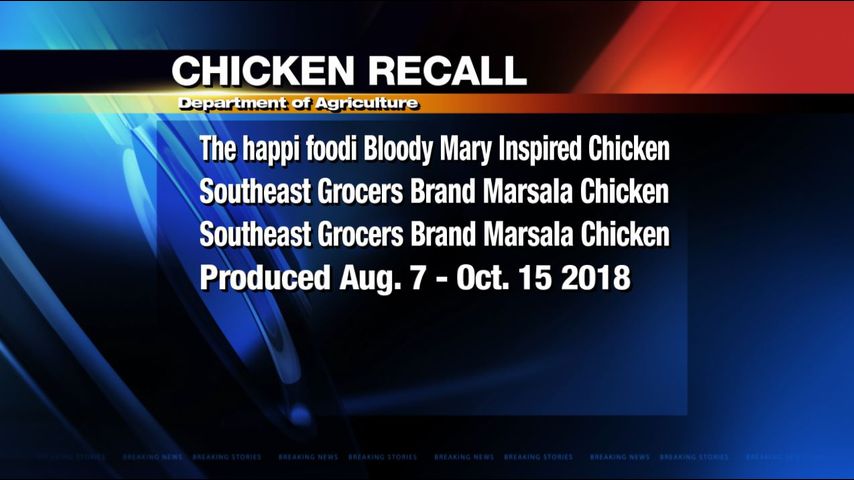 The products affected include happi foodi Bloody Mary Inspired Chicken, Southeast Grocers Brand Marsala Chicken and Southeast Grocers Brand Mediterranean Herb Chicken items.