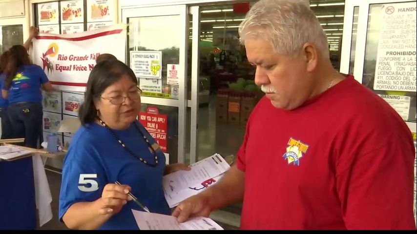 The Equal Voice Network of Hidalgo and Cameron counties had members registering people at Junior’s Supermarket in San Juan.