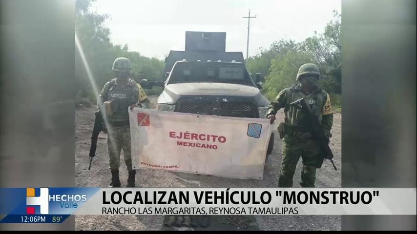 Durante un patrullaje de personal del ejército sobre un camino de terracería a inmediaciones del rancho Las Margaritas en Reynosa, Tamaulipas se localizo este lunes un vehículo denominado "Moustro" en su interior contenía cargadores y cartuchos, los cuales fueron confiscados y entregados a las autoridades correspondientes.