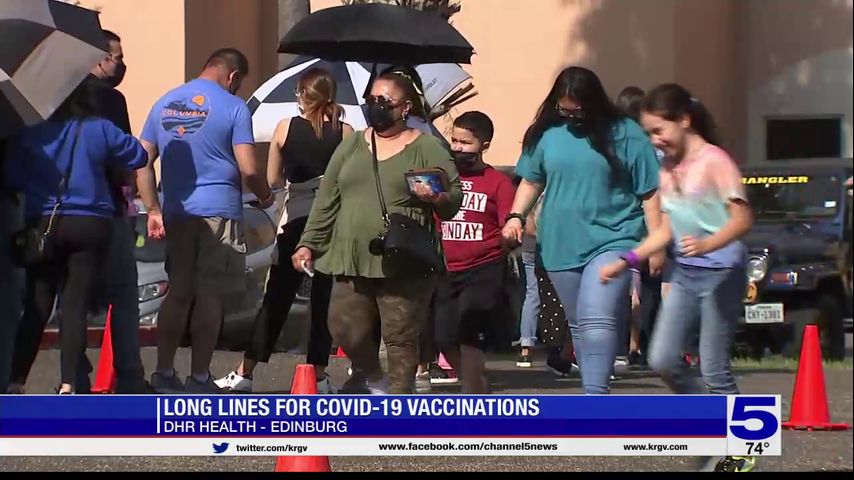 Long lines seen at DHR Health vaccine clinic
