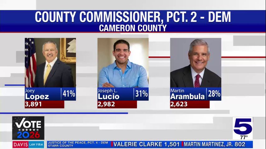 Cameron County Precinct 2 Commissioner Joey Lopez was the top vote-getter in the Democratic primary for his seat, while small business owner Jonathan Campos beat his opponent for the Republican nomination for the same seat.
