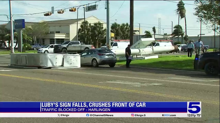 Luby's sign in Harlingen falls over, crushes car