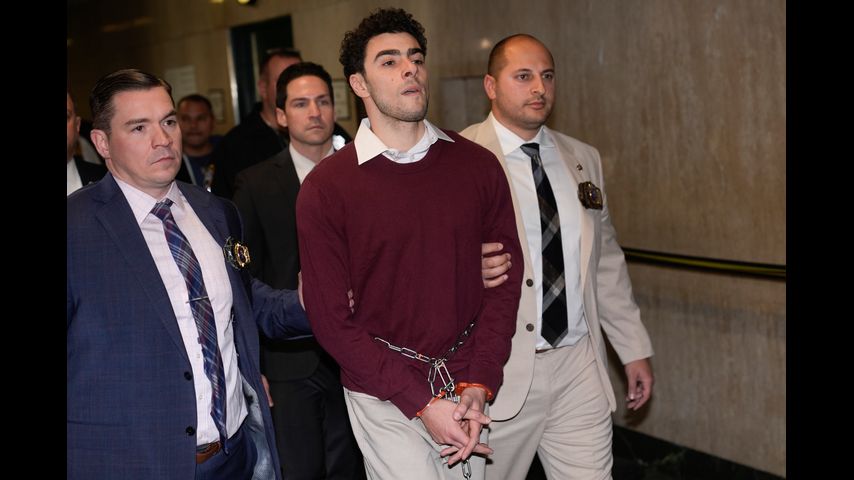 Outside the courthouse, a few dozen supporters chanted, "Free Luigi," over the blare of a trumpet.