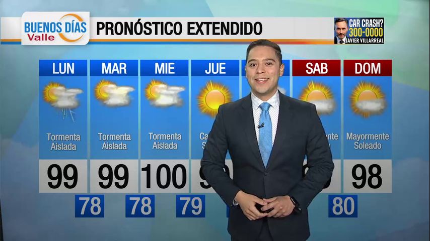 Lunes 10 de Junio: Tormenta aislada con temperaturas en los altos 90 °F