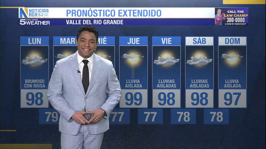 Lunes 21 de Julio: Cálido con brisa, temperaturas en los 98s
