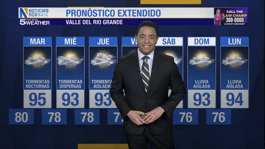 Lunes 26 de Mayo: Tormentas nocturnas, temperaturas en los 95s