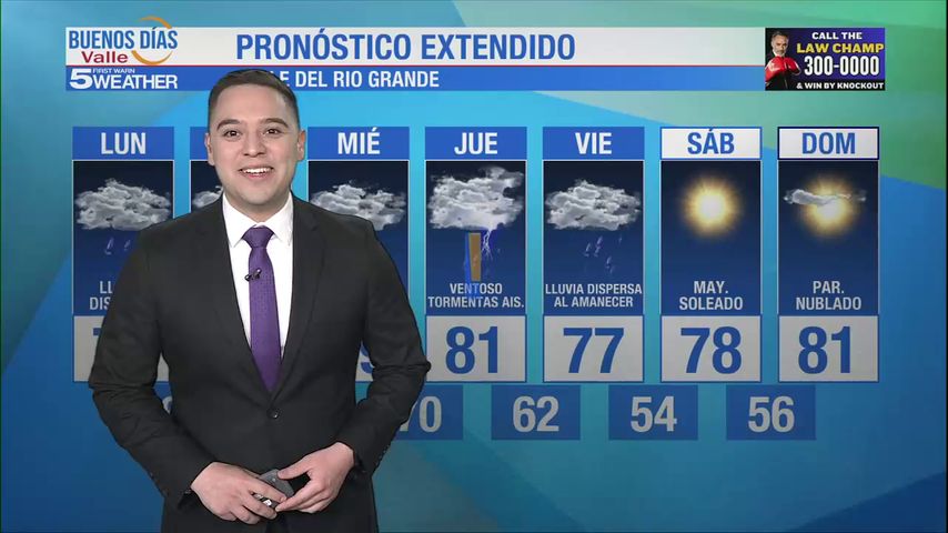 Lunes 27 de Enero: Lluvia dispersa, temperaturas en los 70s
