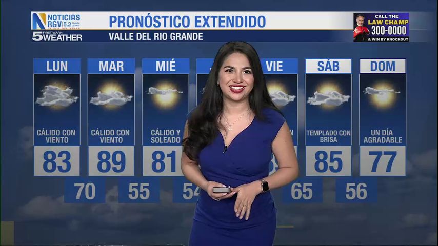 Lunes 3 de Marzo: Cálido con viento, temperaturas en los 83s