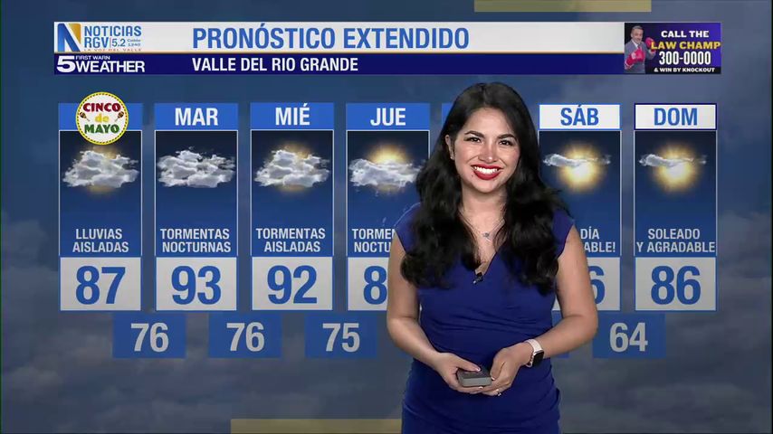 Lunes 5 de Mayo: Lluvias aisladas, temperaturas en los 87s